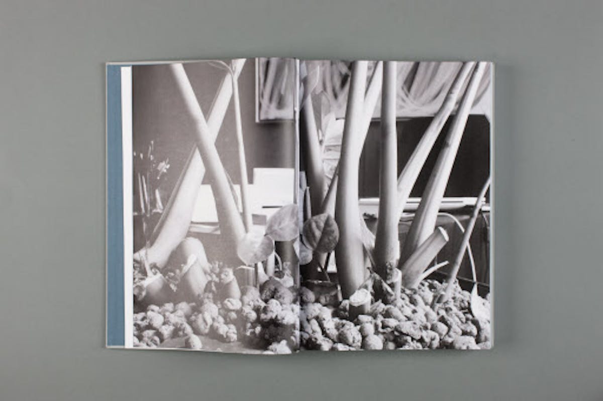 Plants seem to permeate the work of German artist Saskia Groneberg. In Office Plants (2012) – a hand-bound, 390-page book – she explores the plant-filled universe of people at work. Dedicated to the fragments of nature that office employees bring to their otherwise anonymous workplace, her archival documentation depicts plants growing ceiling-high, reaching behind radiators, and peeking through the blinds. The large-format book features 48 black and white photographs, a “herbarium” with color scans of collected plant cuttings identified only by their location, and handwritten texts by the office employees. The book, designed by the artist herself, evokes the spirit of old botanical albums and includes an index that allows the reader to find connections between the individual chapters.