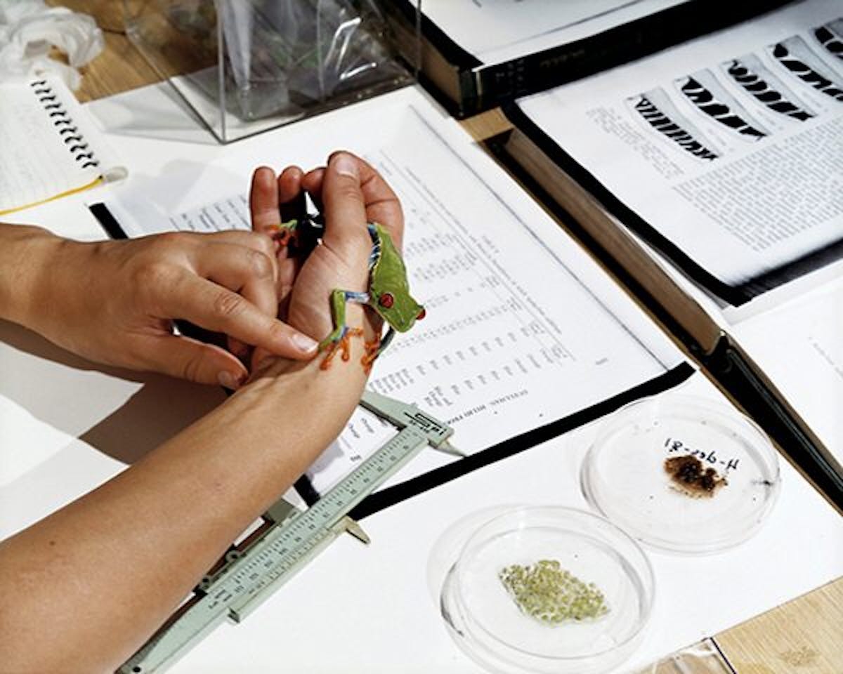 Sanna Kannisto’s photographs reflect her sensitive interest in nature. Her images were created during biological field research in the rain forests of Brazil, Guinea, and Costa Rica (2002–2006). She describes herself as a “visual researcher,” who approaches flora and fauna with documentarian and scientific interest. A quiet irony is mixed into this seemingly serious, scientific aspect, becoming apparent in sometimes absurd imagery