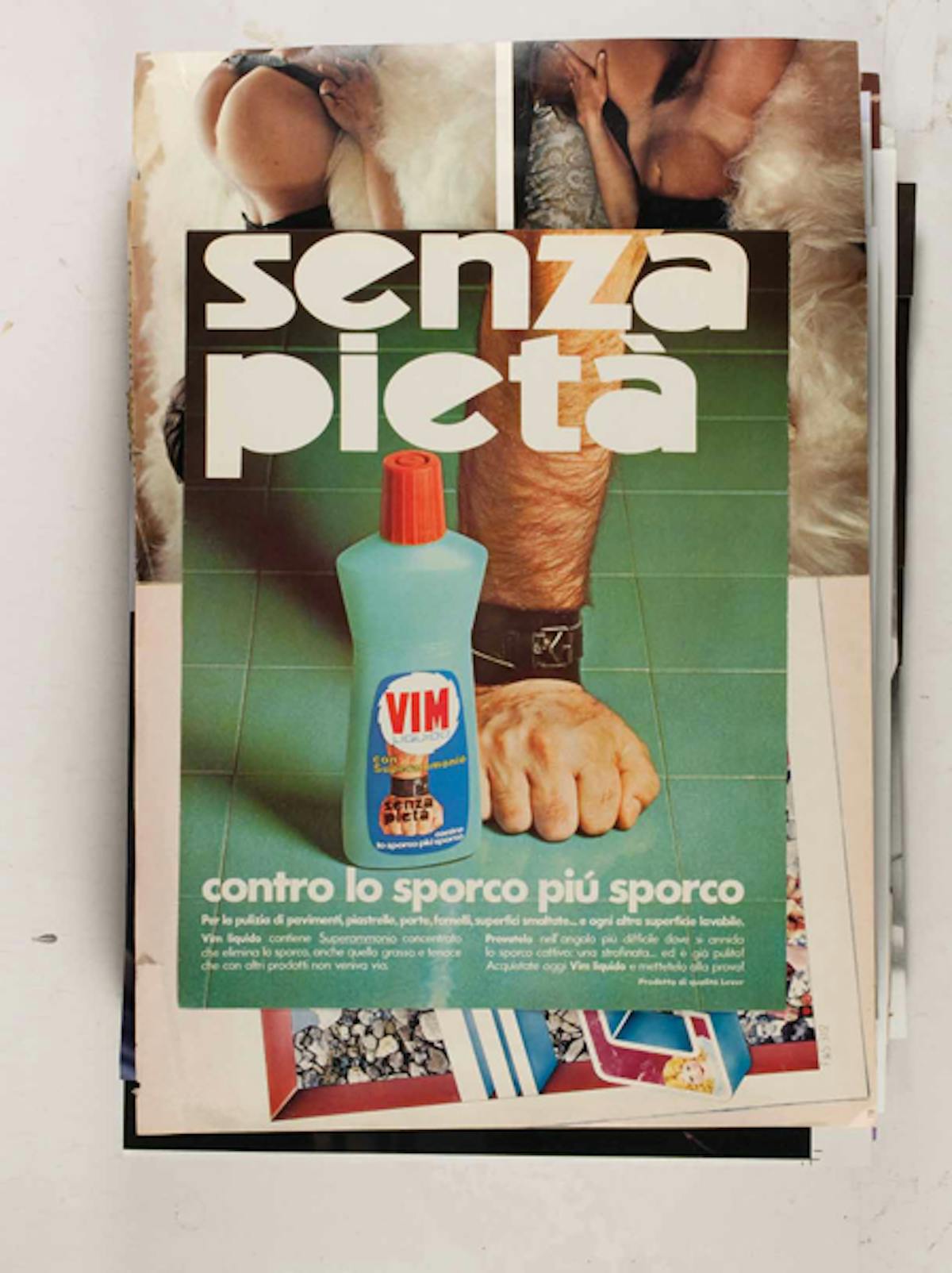 New York conceptual artist Leigh Ledare documents the zeitgeist from the 1960s/70s through the present in his Ephemeras project, which was realized as part of his work Double Bind (2010). The series is essentially a personal archive that Ledare compiled over the years from magazines and other printed sources. A total of 480 pages were reproduced in 6 magazines of 80 pages each. The individual images, which consist primarily of images from fashion, classified ads, excerpts from magazine articles, and pornography do not seem to be arranged in any particular order or share a common context. Like a multifaceted collage, a fragment of an advertisement for children’s toys follows a pornographic image from 1970. Ledare, who worked for several years as an assistant to Larry Clark, gained international recognition with his project Pretend You’re Actually Alive (2008) – a controversial series about his Oedipal relationship with his mother.
