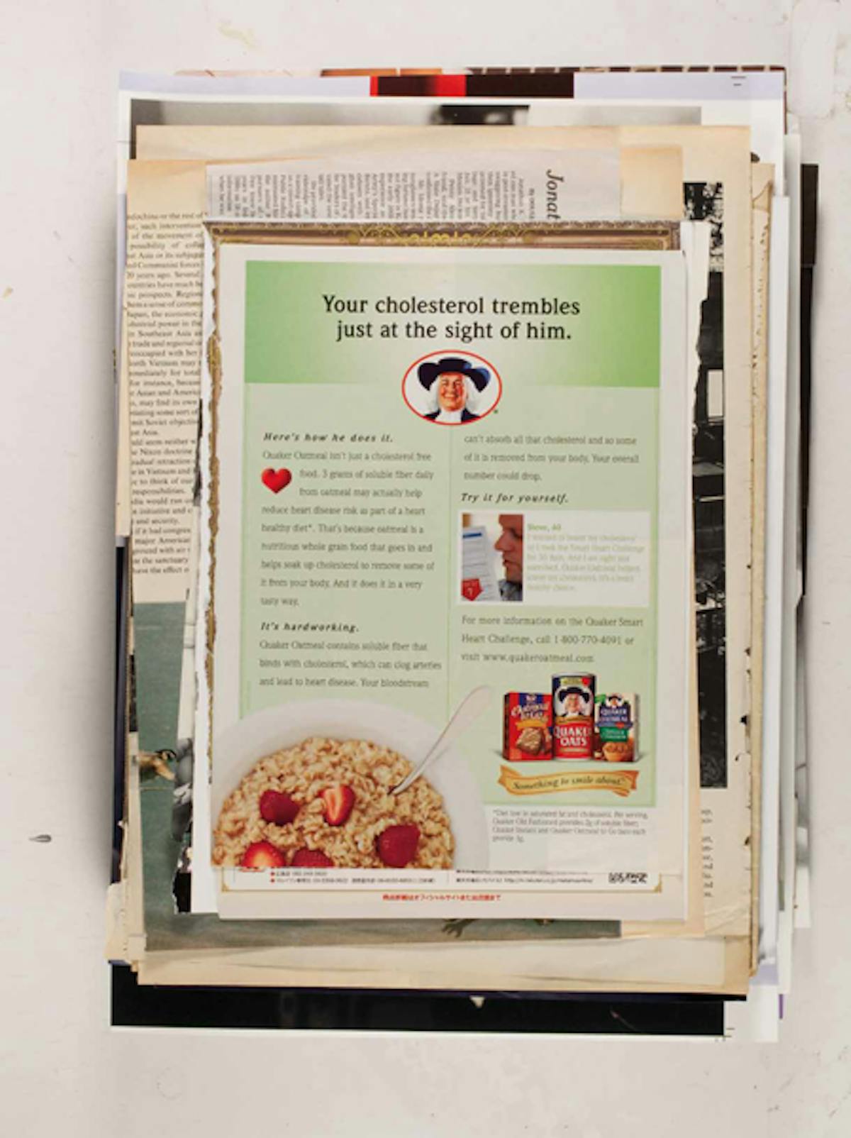 New York conceptual artist Leigh Ledare documents the zeitgeist from the 1960s/70s through the present in his Ephemeras project, which was realized as part of his work Double Bind (2010). The series is essentially a personal archive that Ledare compiled over the years from magazines and other printed sources. A total of 480 pages were reproduced in 6 magazines of 80 pages each. The individual images, which consist primarily of images from fashion, classified ads, excerpts from magazine articles, and pornography do not seem to be arranged in any particular order or share a common context. Like a multifaceted collage, a fragment of an advertisement for children’s toys follows a pornographic image from 1970. Ledare, who worked for several years as an assistant to Larry Clark, gained international recognition with his project Pretend You’re Actually Alive (2008) – a controversial series about his Oedipal relationship with his mother.