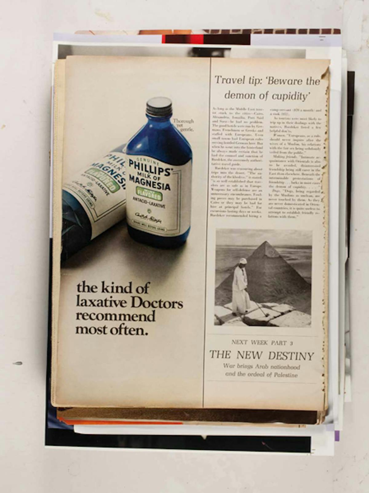 New York conceptual artist Leigh Ledare documents the zeitgeist from the 1960s/70s through the present in his Ephemeras project, which was realized as part of his work Double Bind (2010). The series is essentially a personal archive that Ledare compiled over the years from magazines and other printed sources. A total of 480 pages were reproduced in 6 magazines of 80 pages each. The individual images, which consist primarily of images from fashion, classified ads, excerpts from magazine articles, and pornography do not seem to be arranged in any particular order or share a common context. Like a multifaceted collage, a fragment of an advertisement for children’s toys follows a pornographic image from 1970. Ledare, who worked for several years as an assistant to Larry Clark, gained international recognition with his project Pretend You’re Actually Alive (2008) – a controversial series about his Oedipal relationship with his mother.