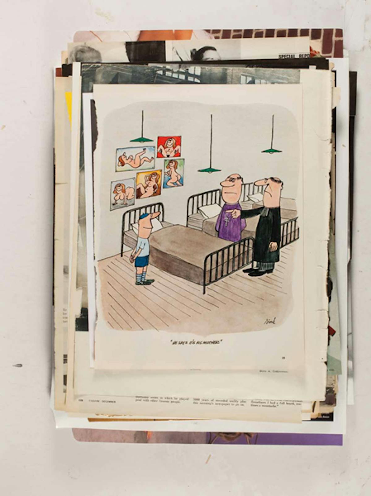 New York conceptual artist Leigh Ledare documents the zeitgeist from the 1960s/70s through the present in his Ephemeras project, which was realized as part of his work Double Bind (2010). The series is essentially a personal archive that Ledare compiled over the years from magazines and other printed sources. A total of 480 pages were reproduced in 6 magazines of 80 pages each. The individual images, which consist primarily of images from fashion, classified ads, excerpts from magazine articles, and pornography do not seem to be arranged in any particular order or share a common context. Like a multifaceted collage, a fragment of an advertisement for children’s toys follows a pornographic image from 1970. Ledare, who worked for several years as an assistant to Larry Clark, gained international recognition with his project Pretend You’re Actually Alive (2008) – a controversial series about his Oedipal relationship with his mother.