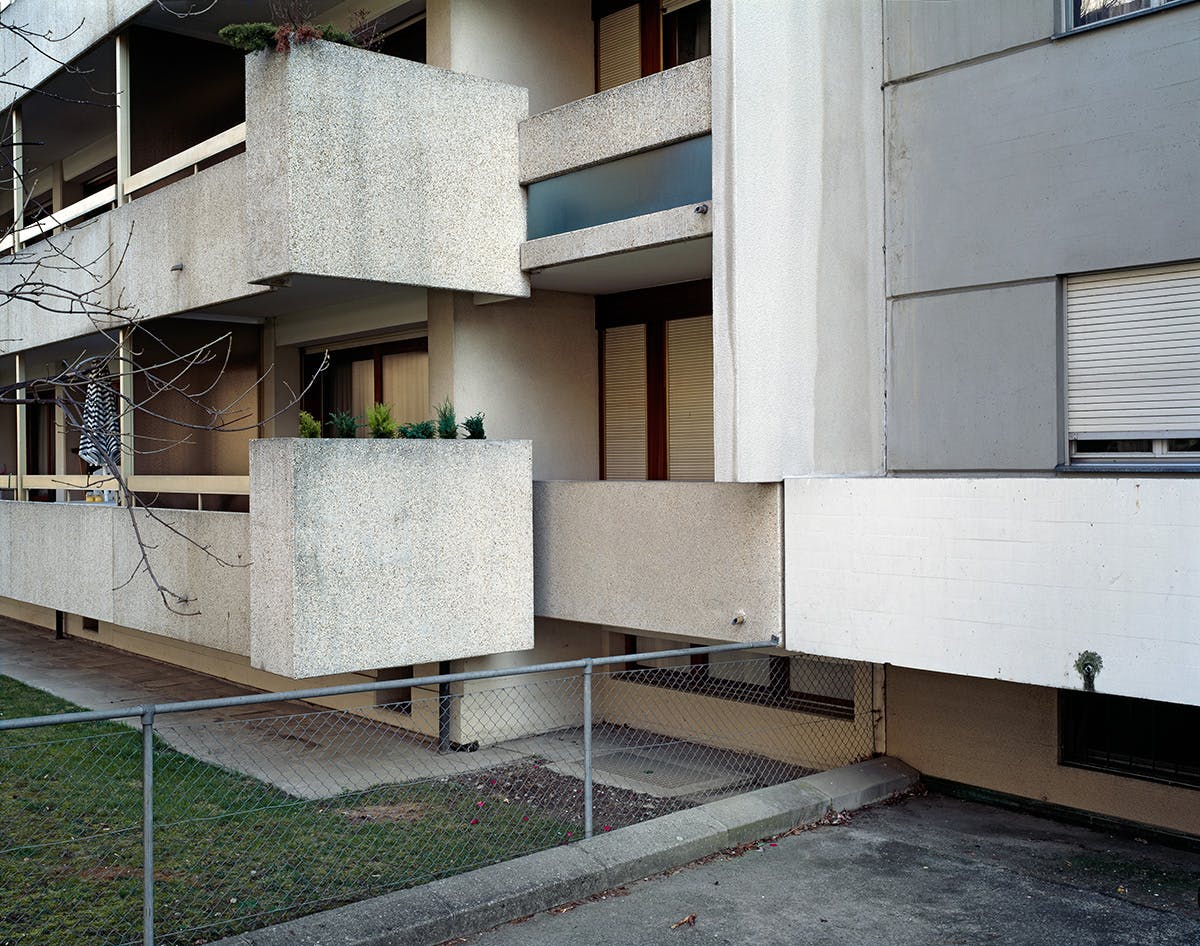 Serge Fruehauf’s series of photographs, Architectures, observe coincidences with casual precision: they are of planned or deliberate constellations of buildings that form bland monstrosities. Ugly hybrids of everyday architecture they speak a stammering, gurgling, stuttering language of form, a concrete lapsus linguae – inadvertent, helpless collision-architecture. Fruehauf has photographed them so casually that he has just managed to avoid any assumption that his pictures might have some hidden agenda.