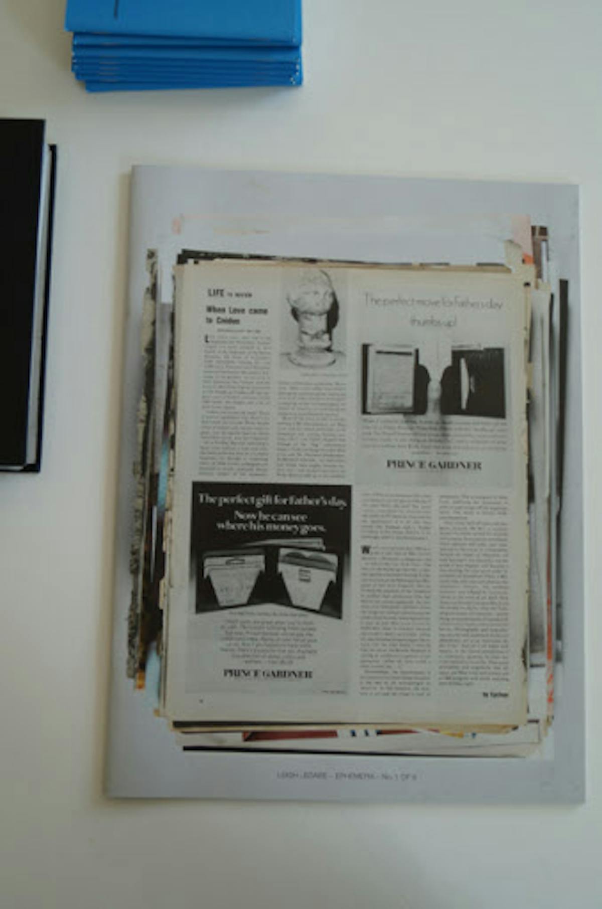New York conceptual artist Leigh Ledare documents the zeitgeist from the 1960s/70s through the present in his Ephemeras project, which was realized as part of his work Double Bind (2010). The series is essentially a personal archive that Ledare compiled over the years from magazines and other printed sources. A total of 480 pages were reproduced in 6 magazines of 80 pages each. The individual images, which consist primarily of images from fashion, classified ads, excerpts from magazine articles, and pornography do not seem to be arranged in any particular order or share a common context. Like a multifaceted collage, a fragment of an advertisement for children’s toys follows a pornographic image from 1970. Ledare, who worked for several years as an assistant to Larry Clark, gained international recognition with his project Pretend You’re Actually Alive (2008) – a controversial series about his Oedipal relationship with his mother.