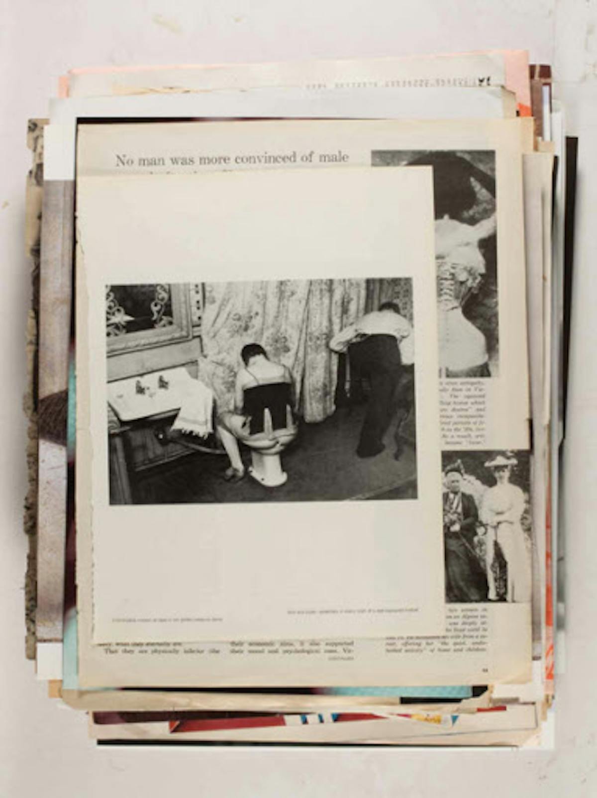 New York conceptual artist Leigh Ledare documents the zeitgeist from the 1960s/70s through the present in his Ephemeras project, which was realized as part of his work Double Bind (2010). The series is essentially a personal archive that Ledare compiled over the years from magazines and other printed sources. A total of 480 pages were reproduced in 6 magazines of 80 pages each. The individual images, which consist primarily of images from fashion, classified ads, excerpts from magazine articles, and pornography do not seem to be arranged in any particular order or share a common context. Like a multifaceted collage, a fragment of an advertisement for children’s toys follows a pornographic image from 1970. Ledare, who worked for several years as an assistant to Larry Clark, gained international recognition with his project Pretend You’re Actually Alive (2008) – a controversial series about his Oedipal relationship with his mother.