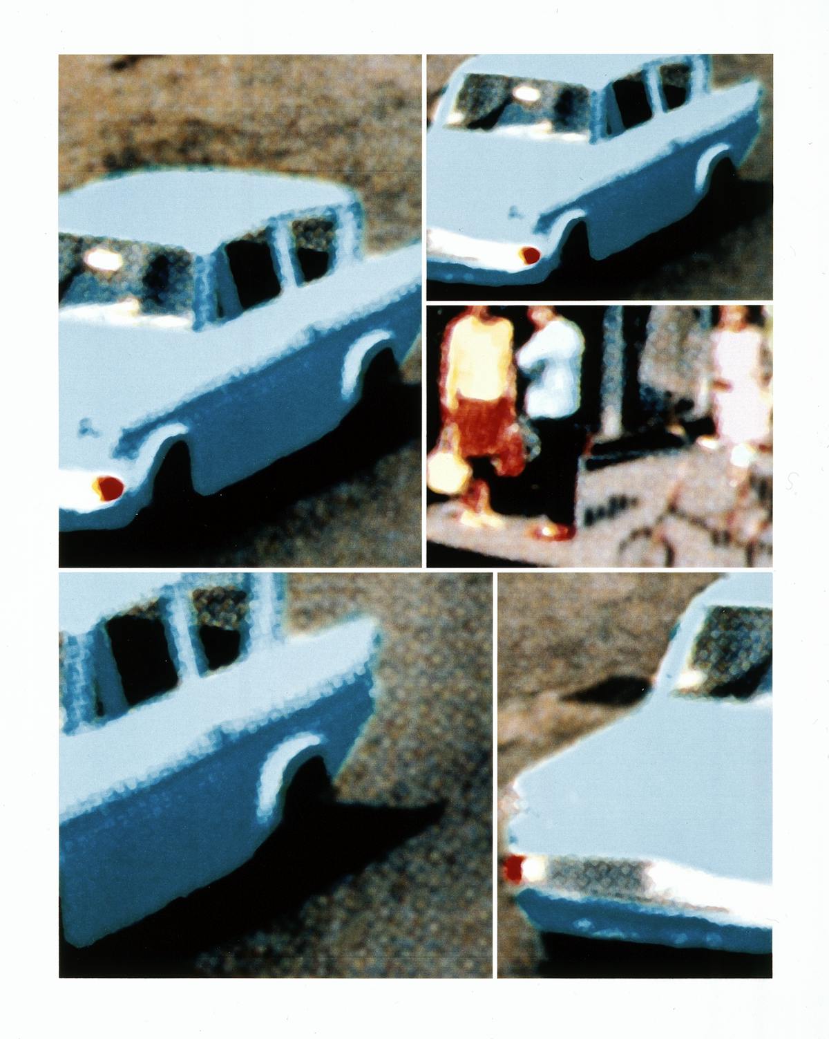 The eleven-part series Inadmissible Evidence by British artist Suky Best whimsically encapsulates the genre of the photographic novel. The starting point for this work was a collection of vintage 1950s English holiday postcards, which she incorporated into her visual system.