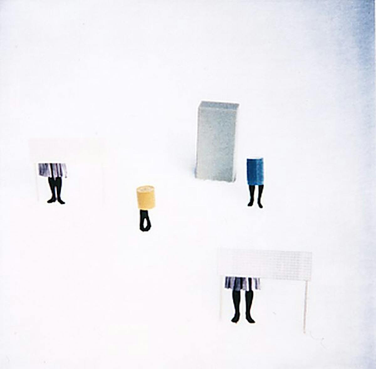 Christoph Rütimann works in many different media and is known for his conceptual and compositionally precise approach. He works with the idea of free-floating energies that condense into streams and produce weight in the balance of a line on the wall, a curve in space, or a seismographic notation on paper. Yet it is in his Polaroids – narrative, theatrical scenes and stories in a snowbound setting, many of them actually staged during his winter holidays – that Rütimann’s lyrical side comes to the fore. He uses snow as a semi-translucent stage on which all manner of visual narratives and dramas can be set. Small scenes, into which he sometimes inserts portraits of himself and his girlfriend, are constructed from myriad fragments—cut-out photos, slivers of wood and sticks, sticky tape—to create a beautiful visual tapestry of, say, a garden with buildings of yellow, red or green bricks beside a little square pond of deep blue. His constructed, fragmented worlds combine to create a magical visual poetry.
