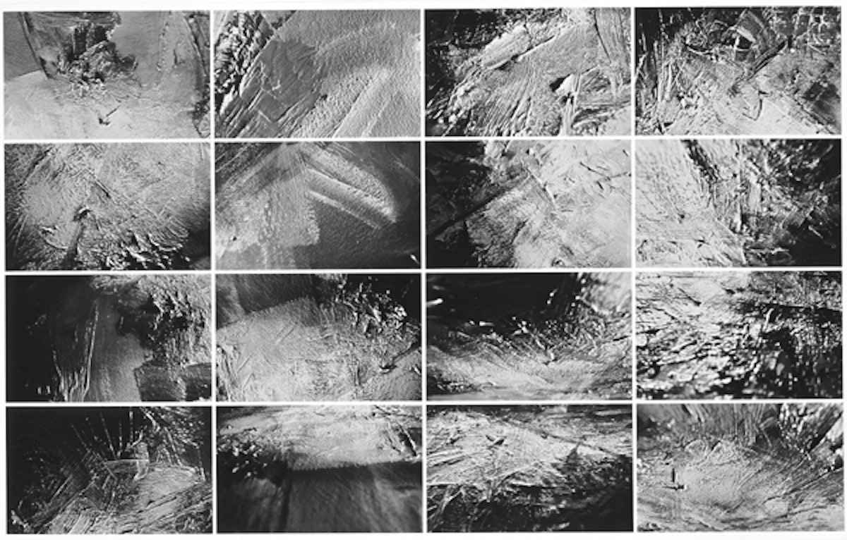 Gerhard Richter’s work is deeply engaged with both photography and painting. Many of his paintings have family snapshots from private albums or mass media reproductions as their foundation. When a painting is the starting point for a photographic work, as in the case of the series 128 Details from a Picture (Halifax 1978) II, then the information within the photographic image is blurred, turned into allusions, obfuscations, and traces.