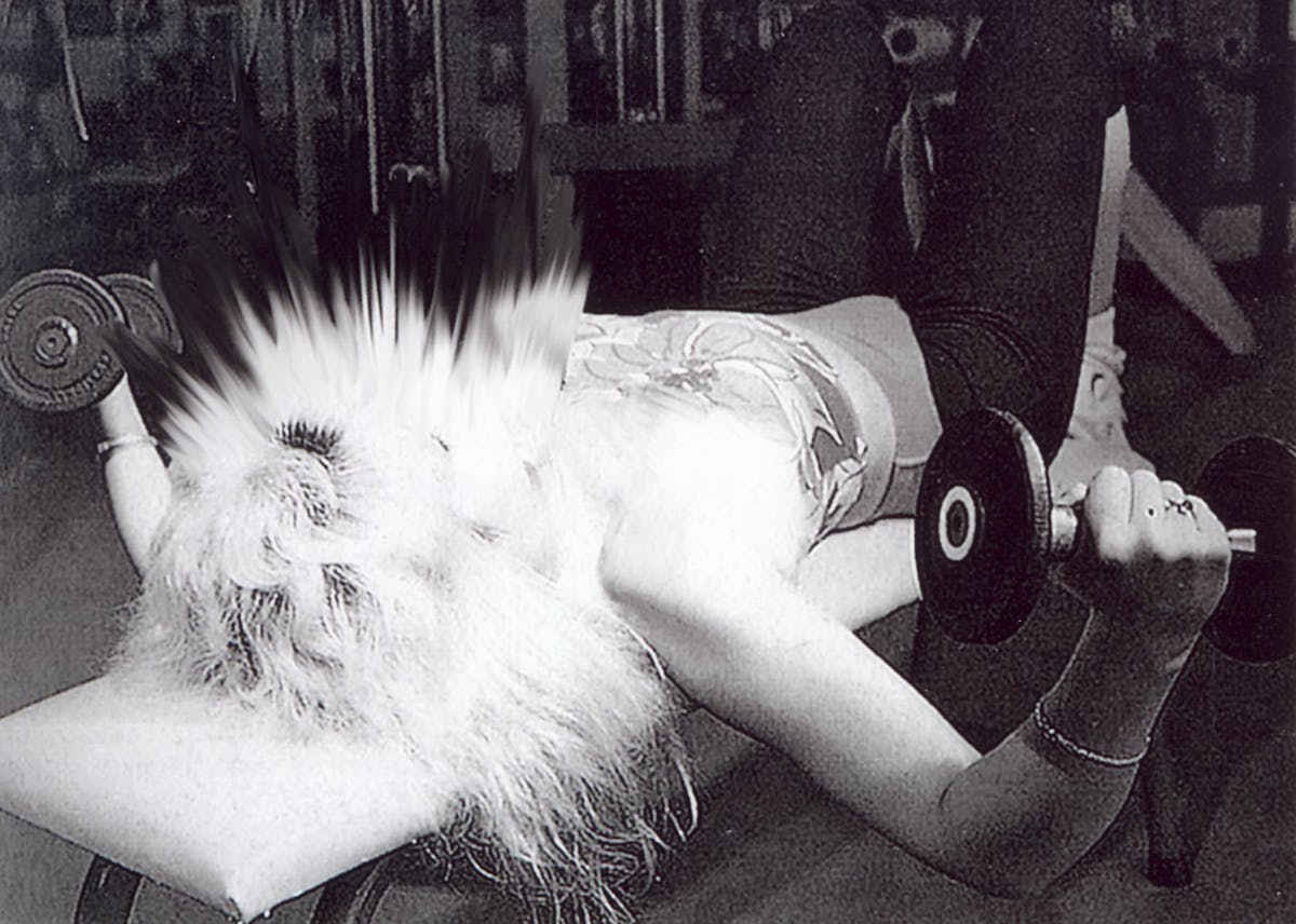 Tanned and bulging muscles and odd companions set the stage in the cluttered collages of this Swiss artist. The longer one views it, the stronger the images seem to distort. Gleaming bodybuilders metamorphose into an uncanny show of flesh in a grotesque, pieced-together magazine hallucination starring superheroes, cars, and other objects of male fantasy. Beni Bishof’s amusing, trashy images take on our obsession with perfect athletic bodies, whose flip side is morbid deformation.