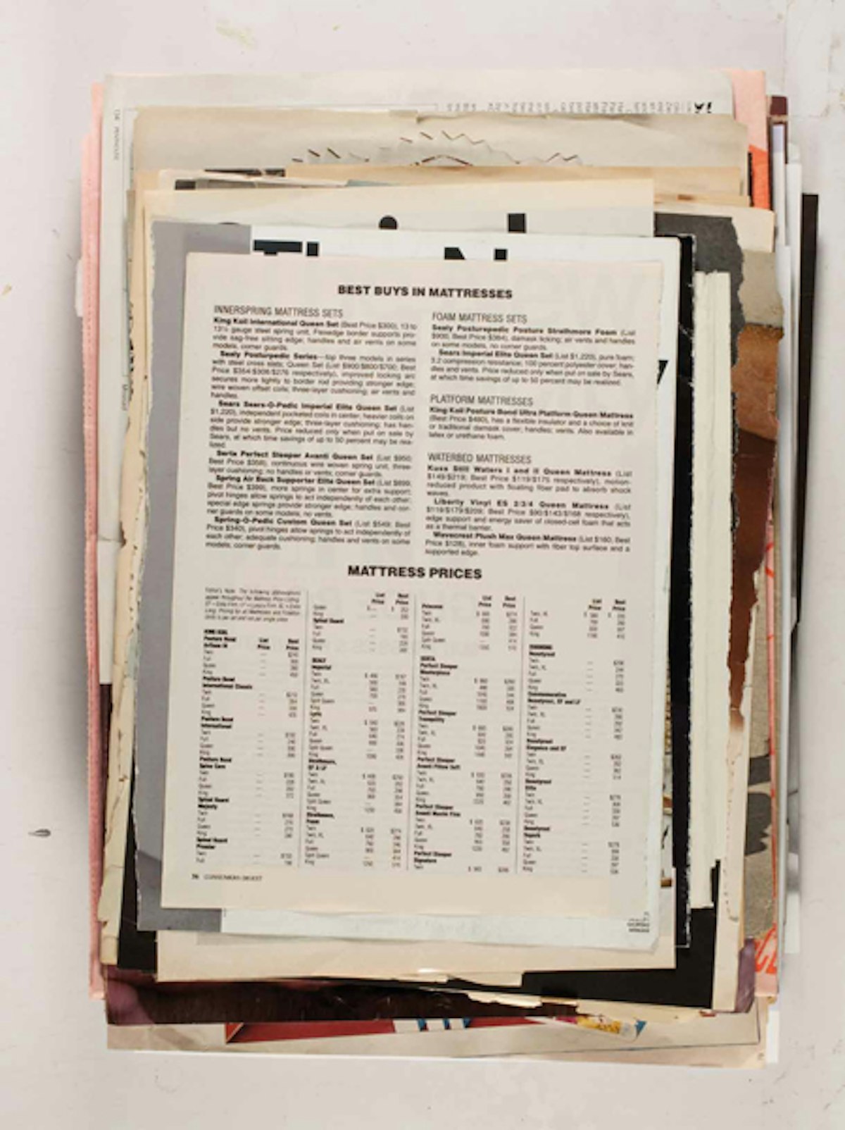 New York conceptual artist Leigh Ledare documents the zeitgeist from the 1960s/70s through the present in his Ephemeras project, which was realized as part of his work Double Bind (2010). The series is essentially a personal archive that Ledare compiled over the years from magazines and other printed sources. A total of 480 pages were reproduced in 6 magazines of 80 pages each. The individual images, which consist primarily of images from fashion, classified ads, excerpts from magazine articles, and pornography do not seem to be arranged in any particular order or share a common context. Like a multifaceted collage, a fragment of an advertisement for children’s toys follows a pornographic image from 1970. Ledare, who worked for several years as an assistant to Larry Clark, gained international recognition with his project Pretend You’re Actually Alive (2008) – a controversial series about his Oedipal relationship with his mother.