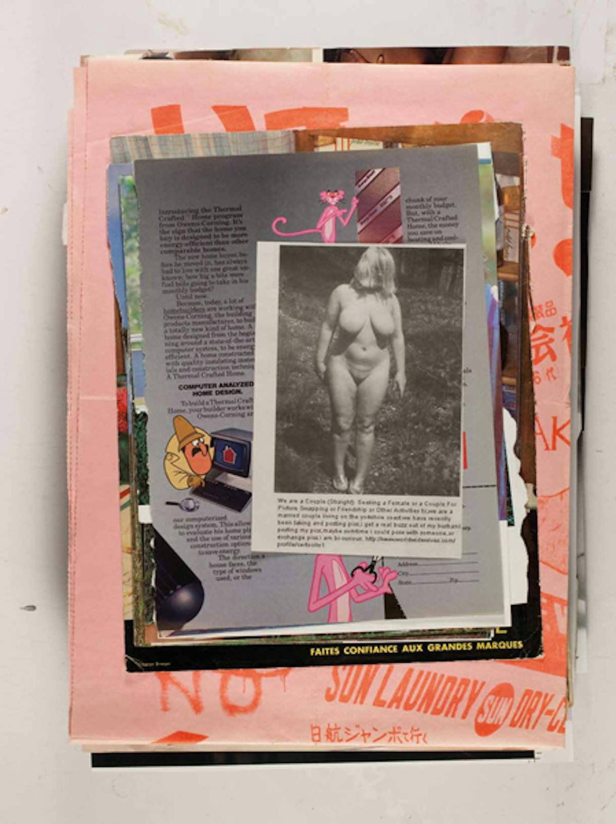 New York conceptual artist Leigh Ledare documents the zeitgeist from the 1960s/70s through the present in his Ephemeras project, which was realized as part of his work Double Bind (2010). The series is essentially a personal archive that Ledare compiled over the years from magazines and other printed sources. A total of 480 pages were reproduced in 6 magazines of 80 pages each. The individual images, which consist primarily of images from fashion, classified ads, excerpts from magazine articles, and pornography do not seem to be arranged in any particular order or share a common context. Like a multifaceted collage, a fragment of an advertisement for children’s toys follows a pornographic image from 1970. Ledare, who worked for several years as an assistant to Larry Clark, gained international recognition with his project Pretend You’re Actually Alive (2008) – a controversial series about his Oedipal relationship with his mother.