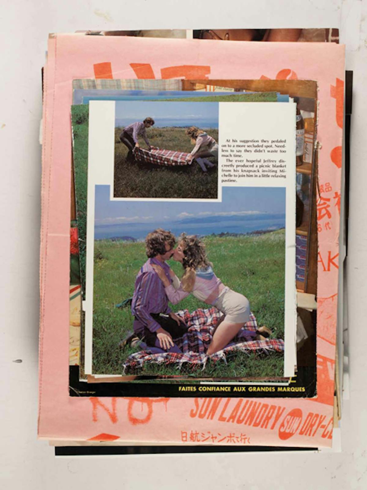 New York conceptual artist Leigh Ledare documents the zeitgeist from the 1960s/70s through the present in his Ephemeras project, which was realized as part of his work Double Bind (2010). The series is essentially a personal archive that Ledare compiled over the years from magazines and other printed sources. A total of 480 pages were reproduced in 6 magazines of 80 pages each. The individual images, which consist primarily of images from fashion, classified ads, excerpts from magazine articles, and pornography do not seem to be arranged in any particular order or share a common context. Like a multifaceted collage, a fragment of an advertisement for children’s toys follows a pornographic image from 1970. Ledare, who worked for several years as an assistant to Larry Clark, gained international recognition with his project Pretend You’re Actually Alive (2008) – a controversial series about his Oedipal relationship with his mother.