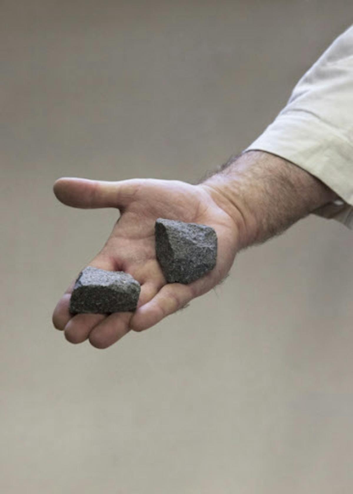 Sculptors Hand Displaying His Work, 2014
