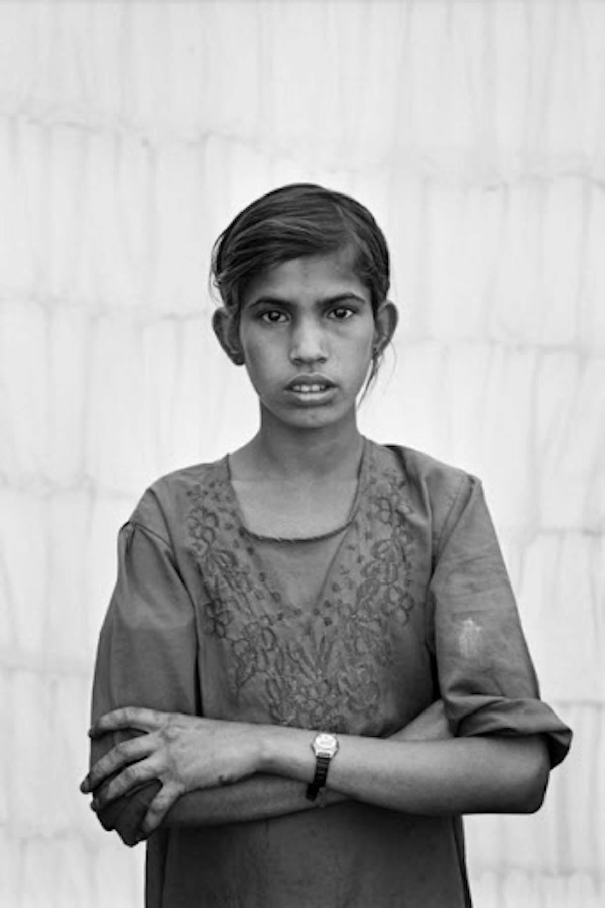 The work Balika Mela (2003) by Indian photographer Gauri Gill provides the viewer with a rare perspective on Indian society. Her series portrays young women, alone or in groups, whom she photographed in an improvised open-air studio at the “Balika Mela,” a fair organized for young women by the nongovernmental organization Urmul Setu Sansthan. Looking seriously into the camera, they appear reserved and somewhat stilted. One can see that they have seldom, if ever, been photographed, and that they are unaccustomed to being at the center of such attention – reflecting the status of women in India, particularly those from the lower castes. Thanks to the overwhelmingly positive response to her project, Gill went on to teach some of these same girls photography in workshops she was invited to conduct by Urmul Setu. Two years later, they documented the fair themselves using cameras provided through the program.
