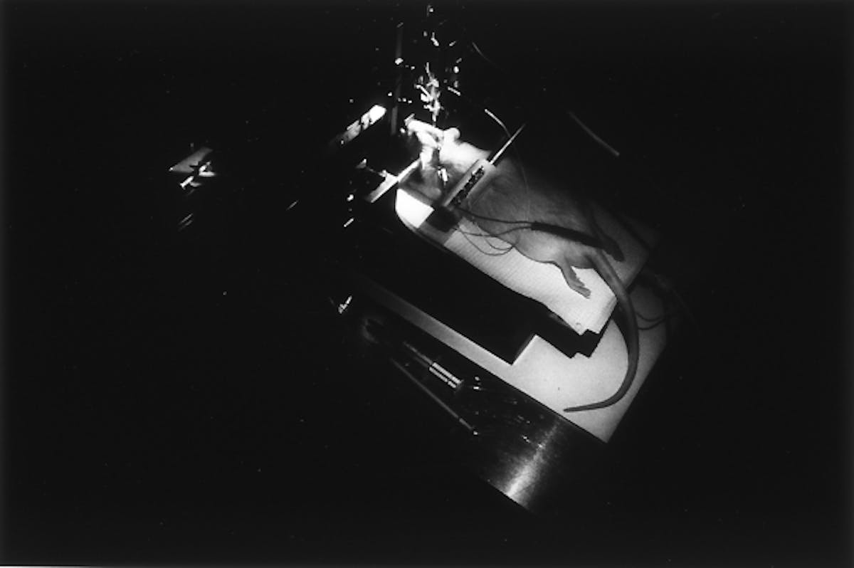 Versuchsanordnung in vivo am offenen Hirn, 1988