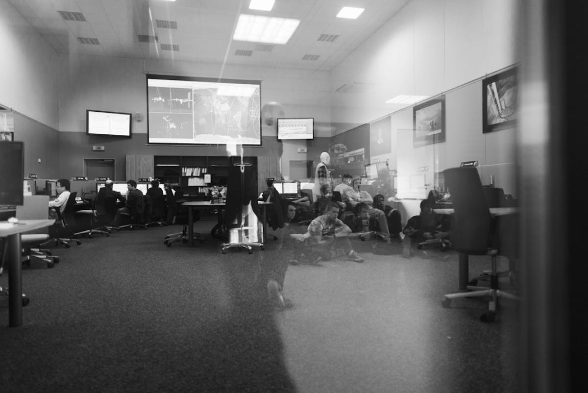 Antye Guenther, here: control room, mirrored (Geneva), , from the series COUNTER PROOF. part 2