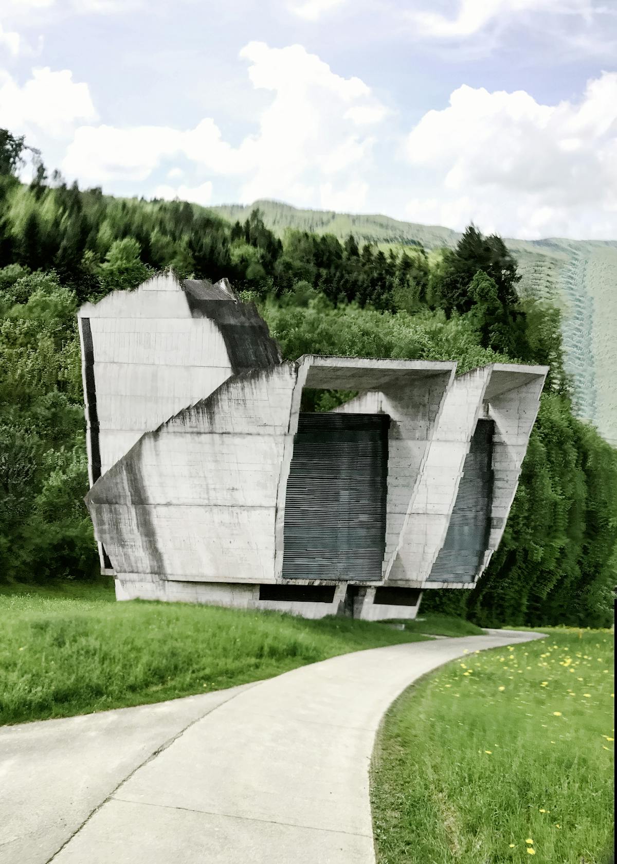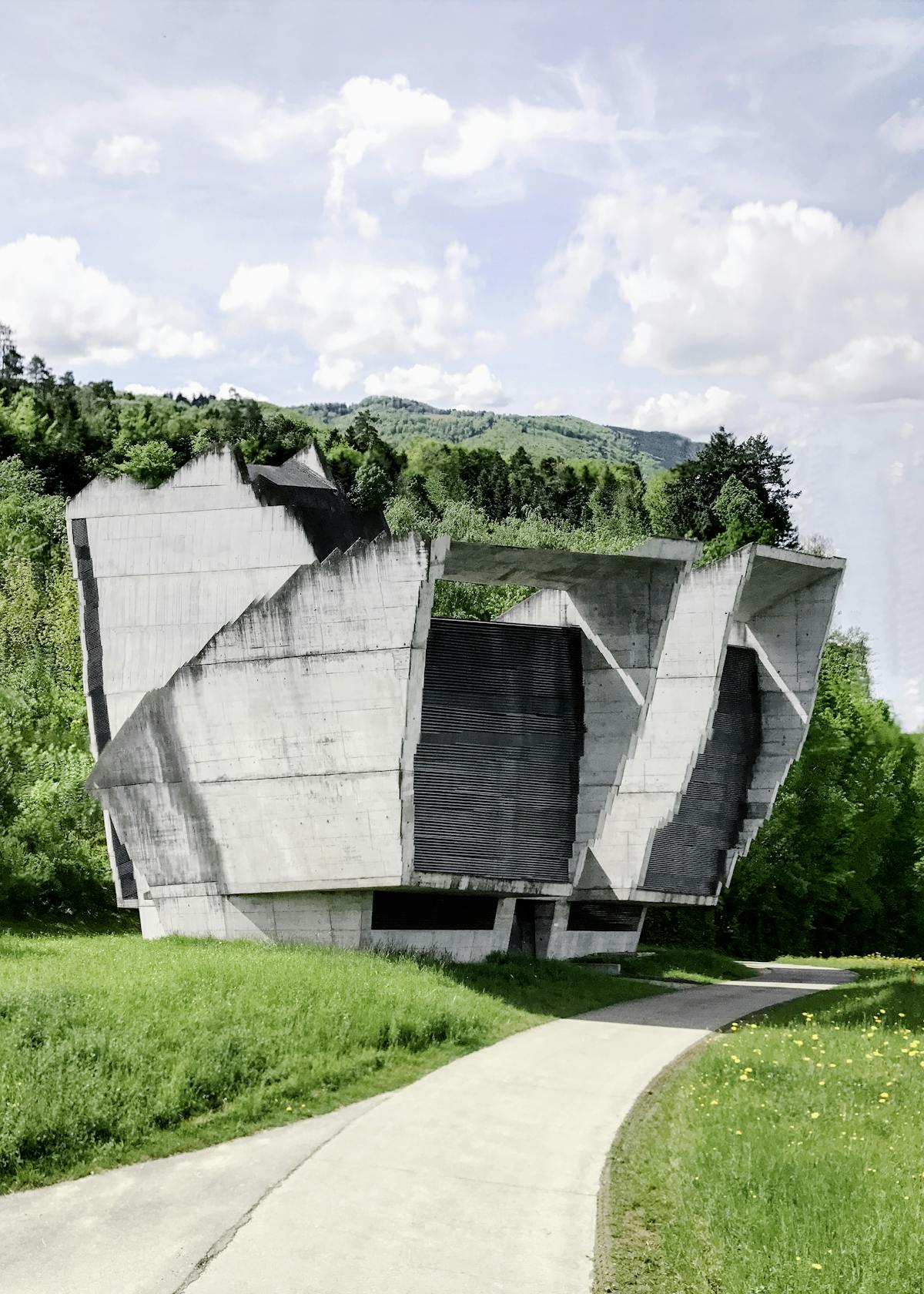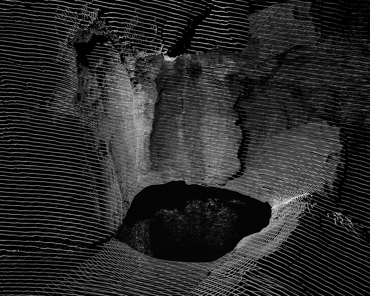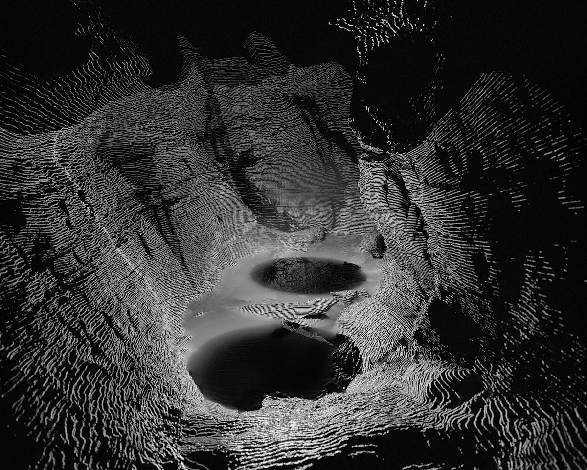 In his series Aporetic Spectacle, Florian Amoser employs a computational camera that vertically scans selected architectural landscapes. The imaging system is attached to the bottom of an autonomous drone that is programmed to continuously repeat an identical flight pattern and capture the same scene over and over. The software attempts each time to stitch the captured data into a seamless image, yet it endlessly fails in its reconstruction of a flawless visual perception. The result of this process is a series of images that highlights a tension between a machinic and a human vision. Within this tension, the uncontrolled distortions of the landscape can be seen as a subtle resistance towards the camera program to replicate the human eye, as if an unconscious machinic vision were emerging through the patterns and manifesting itself in the image.