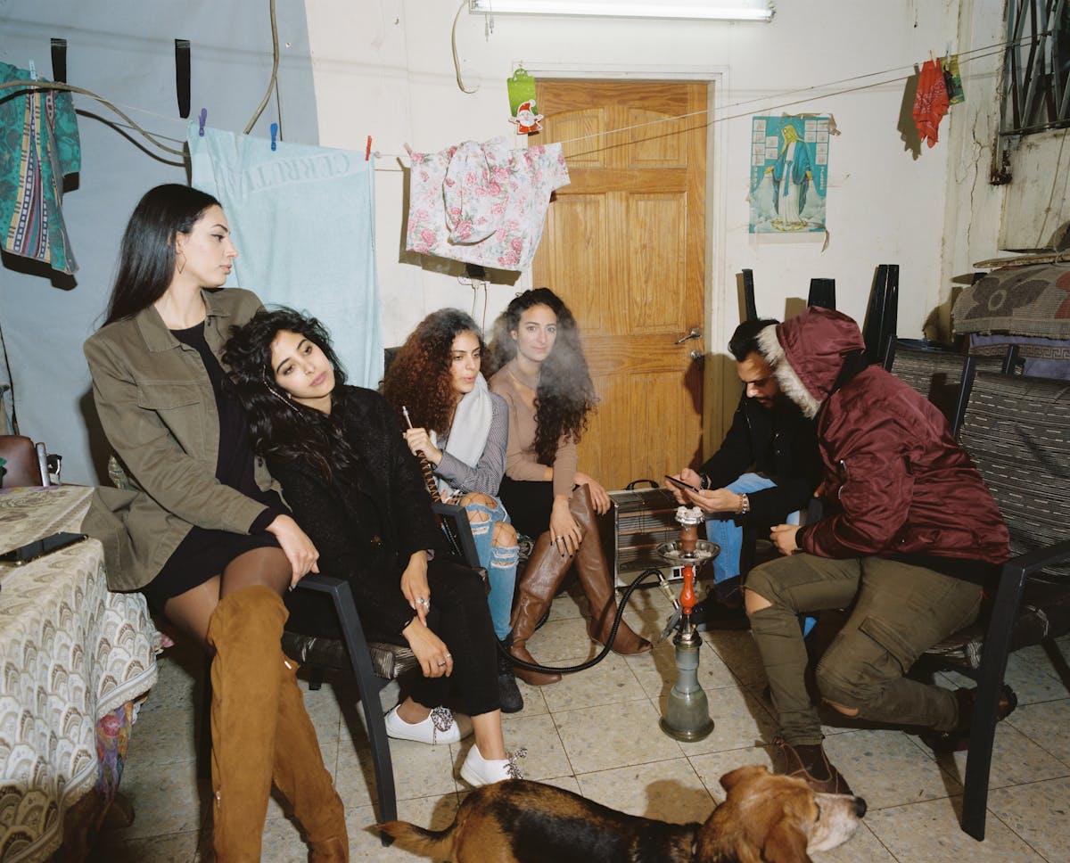 Iris Hassid, Samar and Cousins, Narghile, Grandmother's Porch, Nazareth, 2017, from the series A Place of Our Own © Iris Hassid