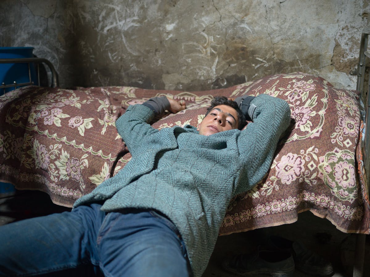 Jan Jurczak, Ukrainian Volunteer Army (UDA) fighter in a makeshift base in an abandoned swimming pool, Marinka, Donetsk suburbs, 2017, from the series Life Goes On © Jan Jurczak
