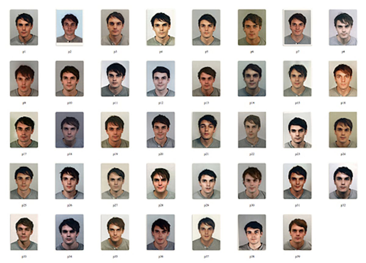 Willem Popelier, 39 ID photos, 20 of which were rejected by the Dutch government, 2009, from the series Visual proof of my existence