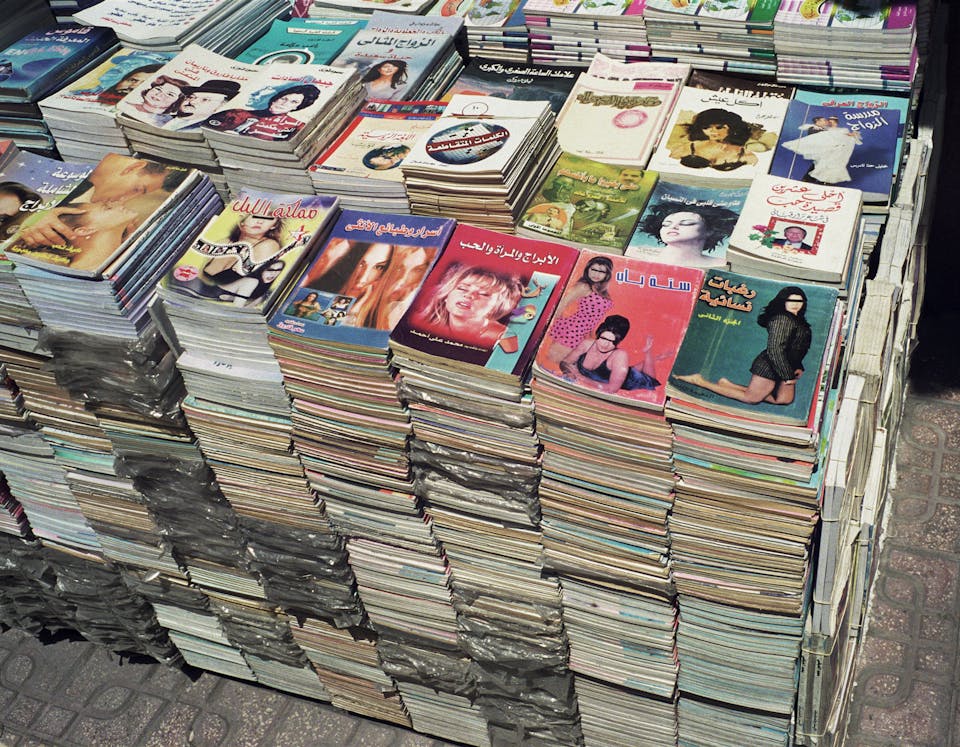 Ad van DenderenArabic versions of soft-porn books are laid out on the pavement, Alexandria, Egypt -