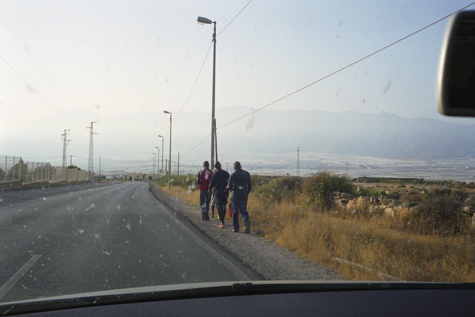 Ad van DenderenImmigrants on their way to their work in the glasshouses, El Ejido, Spain -