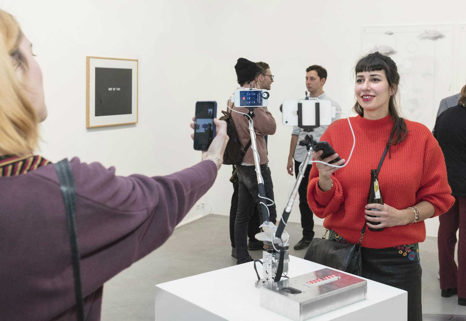 Standing on the dance floor, two lovers look into each other’s eyes. They begin to spin while everything around them disappears into a blur of colors. In his interactive installation A Truly Magical Moment, Adam Basanta draws on this classic Hollywood scene but shifts it into the age of everyday digital communication. By using two iPhones and FaceTime – a form of communication that has become essential to many couples leading long-distance relationships – pairs of museum visitors can act out this love scene, accompanied by romantic music. Basanta’s work is an ironic commentary on the extent to which our interpersonal relationships are increasingly mediated by digital technologies. People’s ways of life, including love, are becoming more and more intermeshed with technological devices. Instead of communicating with a ‘real’ counterpart, we are increasingly coming face to face with his or her medially transmitted image.