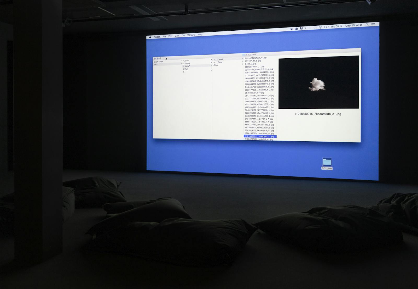 The work Cool Clouds That Look like They Should Be Spelling Something, but They Don’t by Swiss artist Stefan Karrer is based on an online search for images that were tagged “cloud”, “wave” or “rock”, in combination with adjectives such as “cool”, “crazy” or “lonely”. In a seemingly endless loop, the collection of images and texts are clicked through as the captions are read aloud by a monotonous, computer-generated female voice. Karrer’s desktop video demonstrates the pitfalls of online research, the often associative connections between image and text, as well as the highly subjective notion of how we organise our digital content. Furthermore, the piece ironically highlights the emergence of online phenomena that become detached from reality, as well as the digital dialogue with its unique mode of expression. For the viewers, the question arises as to whether clouds can really be “cool” or “crazy” – and if so, by what criteria?