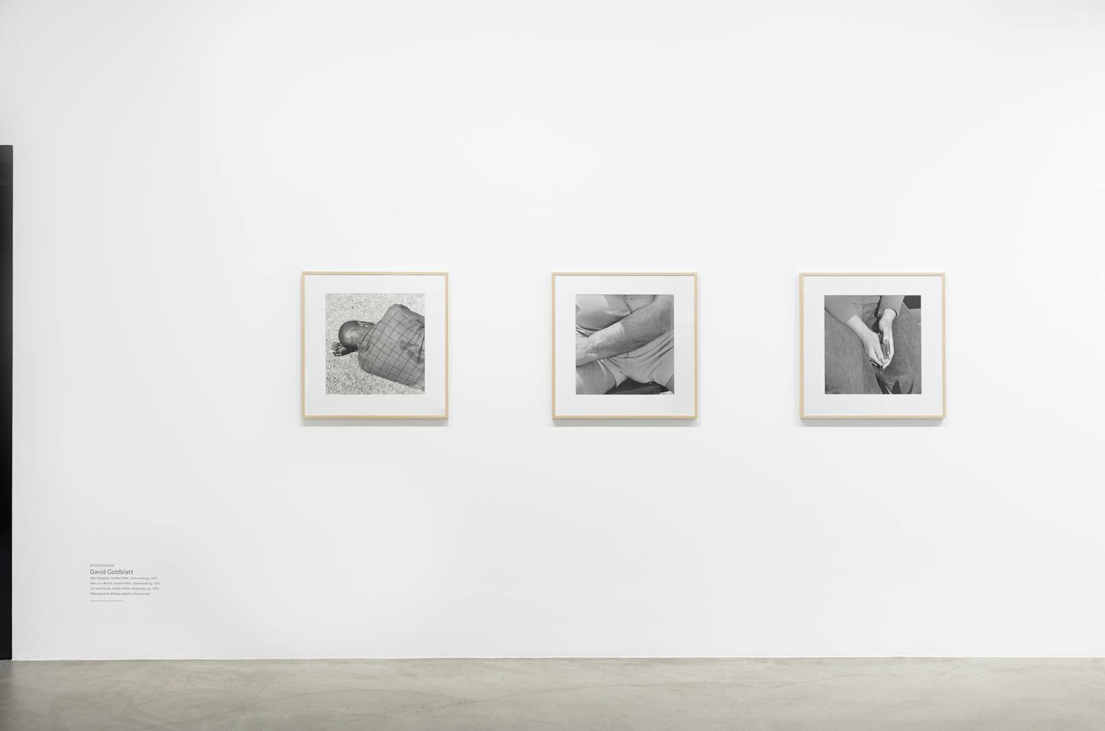 In his 1975 series Particulars, David Goldblatt shows details and characteristics of people visiting a public park in Johannesburg. The unabashed, indeed almost voyeuristic, gaze at intimate body areas and personal gestures, and particularly the evident absence of any kind of conscious posing for the camera, would suggest that the individuals in these pictures were completely unaware that they were being photographed. Portrayed in format-filling close-up, enlarged to some 50 x 60 cm, the surface textures of skin, clothing and jewellery engage our attention in a way that makes them the primary compositional aspect of the photographs. One particular appeal of these images lies in the viewer's ability to observe, openly yet unnoticed, every pore, scar and curve at close quarters. In this early series, Goldblatt also touches upon questions of surveillance in public places, the rights of privacy, the protection of personal images, and the profiling of individuals, all of which are now subject to vigorous debate today, if not at the time of the photographs themselves.