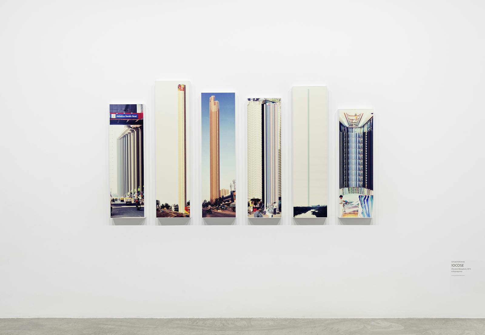 In the past decades, Bangalore’s Electronic City has flourished into a major information technology hub, hosting the offices of some of the most important IT companies. A gated area – rich, clean and distinctly western in its architectural style –, it stands in stark contrast to Bangalore’s everyday reality. The tall buildings, the urban infrastructure and lifestyle all incorporate the Californian tech dream: they hold the promise of a future of social and economic advancement linked to the business of networked communication technologies. Through digital distortions, by which the buildings, constructions and vehicles of Bangalore’s streets are stretched endlessly towards the sky, IOCOSE’s photo series literally translates this promise of elevation through technological progress, exposing its blatant artificiality and the tangible traces it leaves on the city and the mentality of the people.