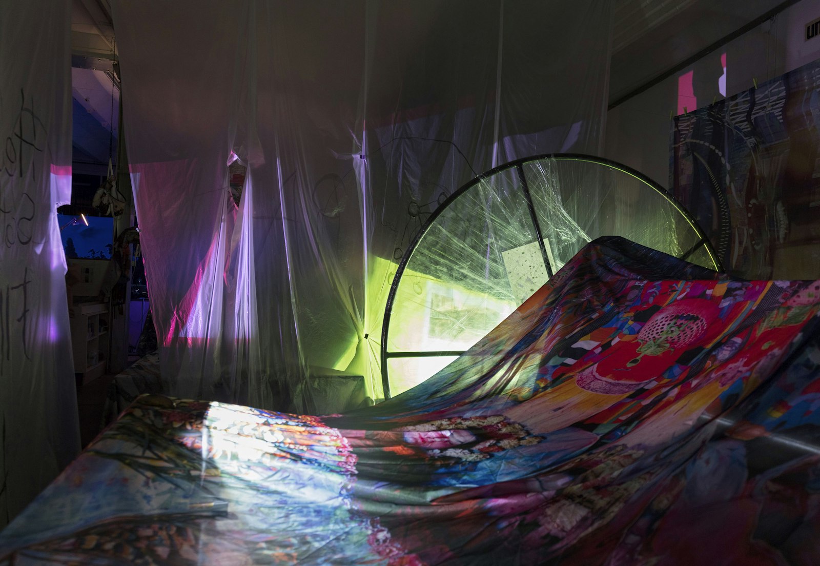 Emile Barret and MusicForEggplant, E.F.F.E. (Eternal Freedom For Eggplant), 2017, SITUATION #87, SITUATIONS/Fact, installation view at LISTE Art Fair Basel, 2017 © Philipp Ottendörfer