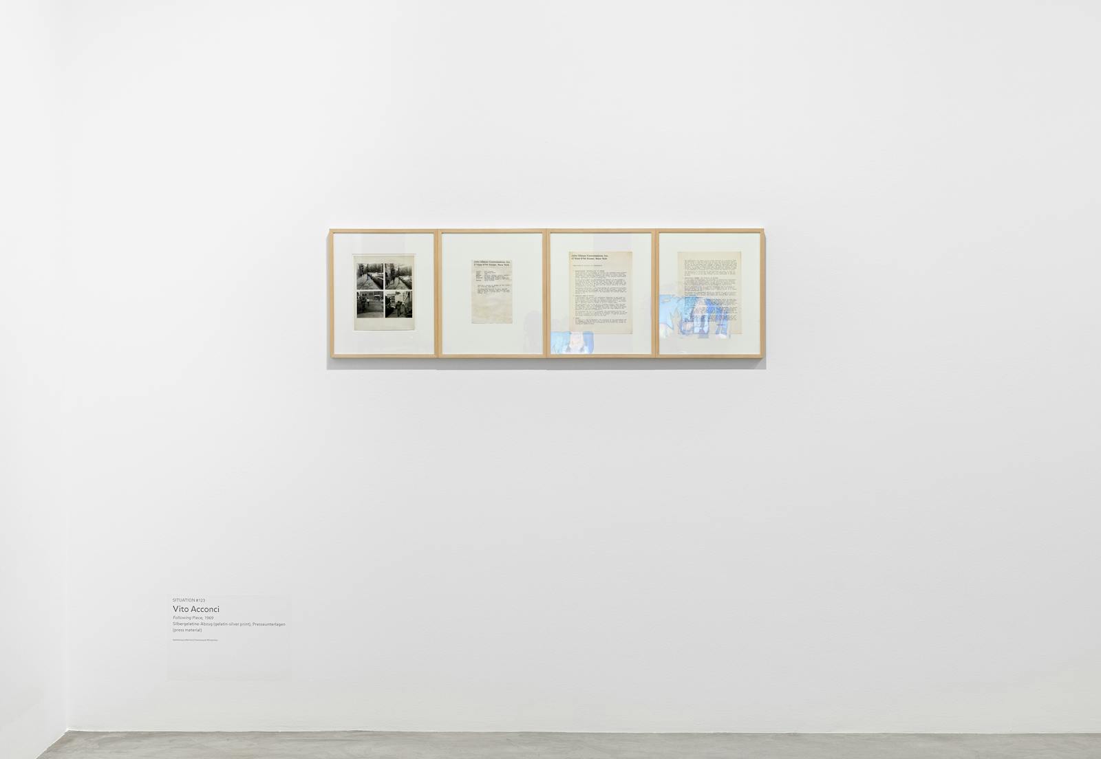 The early works of the American conceptual and performance artist Vito Acconci revolve around interpersonal interactions between gaze and desire. In his controversial 1972 performance Seedbed at the Sonnabend Gallery in New York, for example, the artist is said to have masturbated lying beneath a wooden ramp, hidden to the visitors who moved above him but directly involving them in his sexual fantasies that were transmitted live via loudspeakers. This eccentric form of voyeurism was preceded by his work Following Piece. Between 3 and 25 October 1969, Acconci followed randomly selected residents of New York across the city, sometimes for hours, up to the moment when they entered their private spaces – of course without ever making himself visible as their "follower". The seemingly unspectacular photo collage transforms the traces of individual behaviour into publicly accessible documents, while the camera turns the people Acconci followed into participants of an artistic performance without their consent.