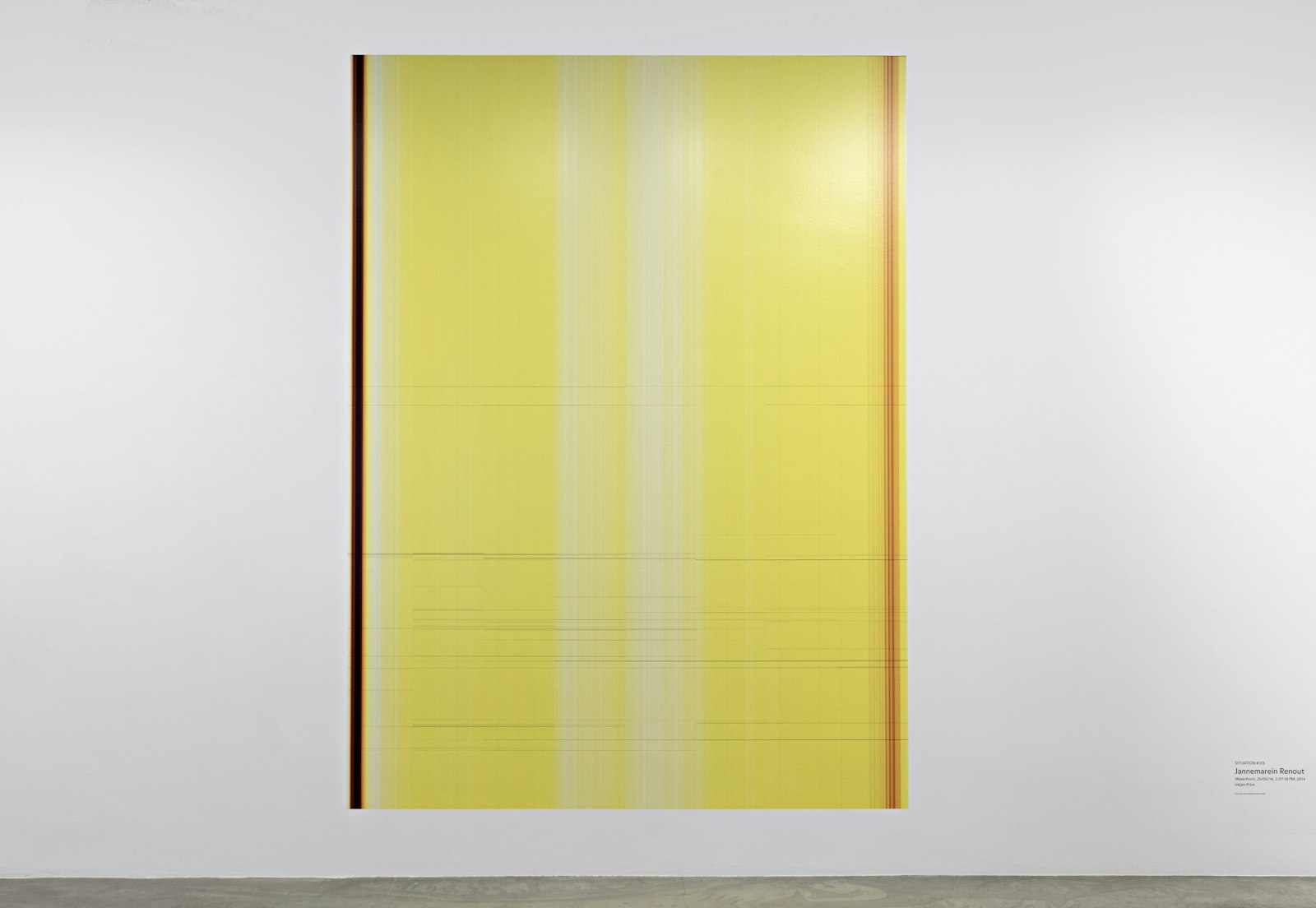 A flatbed scanner is normally used to reproduce documents and originals as accurately and flawlessly as possible. In her artistic work, Jannemarein Renout uses open source software to alter the parameters of the scanner and let daylight into the open-lidded device. Unlike conventional photographic equipment, which uses a lens to bundle light and fix an image that aims to reproduce ‘reality’, the artist’s approach involves capturing landscapes in a way that allows for imperfect transitions and unforeseeable results. Renout creates reference-free colour fields whose alienatory aesthetic gives only an inkling of any relation to reality.