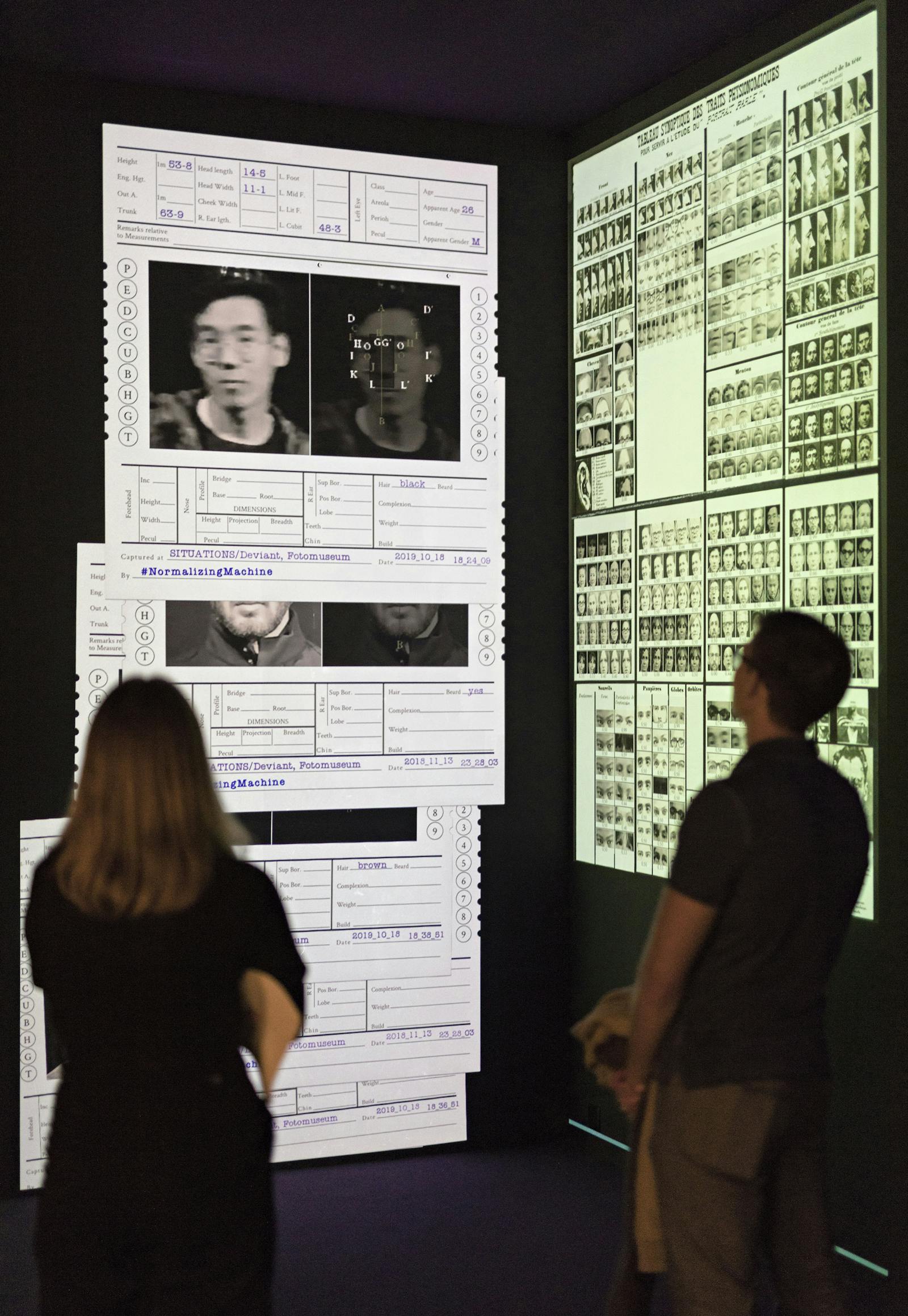 The Normalizing Machine, an interactive installation developed by Israeli artist Mushon Zer-Aviv in collaboration with the software developers Dan Stavy and Eran Weissenstern, deals with visual notions of “normality” and the ways in which bias is inscribed into and reinforced by algorithms and machine learning systems. While being captured on camera, visitors have to decide from a collection of previously photographed visitor portraits which ones seem more “normal” to them. The datasets assembled in this way are evaluated in order to generate an algorithmic image of “normality”. Zer-Aviv thus tracks face recognition techniques of the 21st century back to practices of facial measurement misused for propagandistic purposes under the Nazi regime as well as to the forensic image practices emerging as early as the 19th century. The Normalizing Machine examines how we perceive “normality” today, questioning whether we can do so beyond subjective categories – as well as the role of photographic technologies as supposedly “objective” techniques with regard to mechanisms of normalisation.