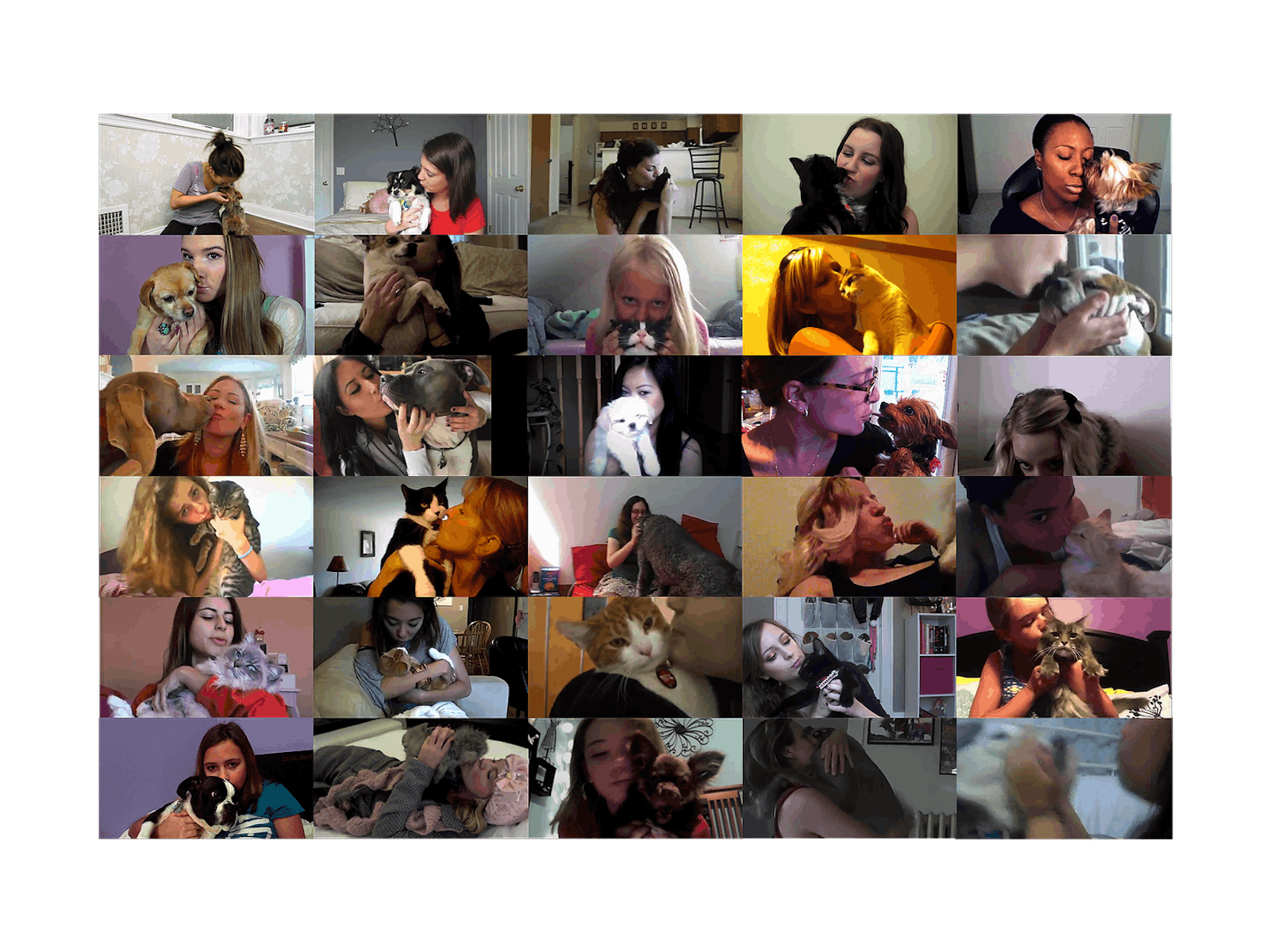 The work of the female art collective NEOZOON focuses on this interface between the human and the animal. MY BBY 8L3W combines multiple amateur videos from YouTube posted by pet owners, in which exclusively women present their dogs and cats to the internet community and offer proof of their love for these animals in front of the webcam. Mother-child associations are not only underscored through synchronized behaviour patterns and sociocultural techniques of the body but are explicitly mentioned. NEOZOON manages to create a coherent, compound narrative out of these fragments, which unmask the behaviours of modern societies through the ways that people present themselves online. It is impossible to avoid the irony implicit in this perspective.