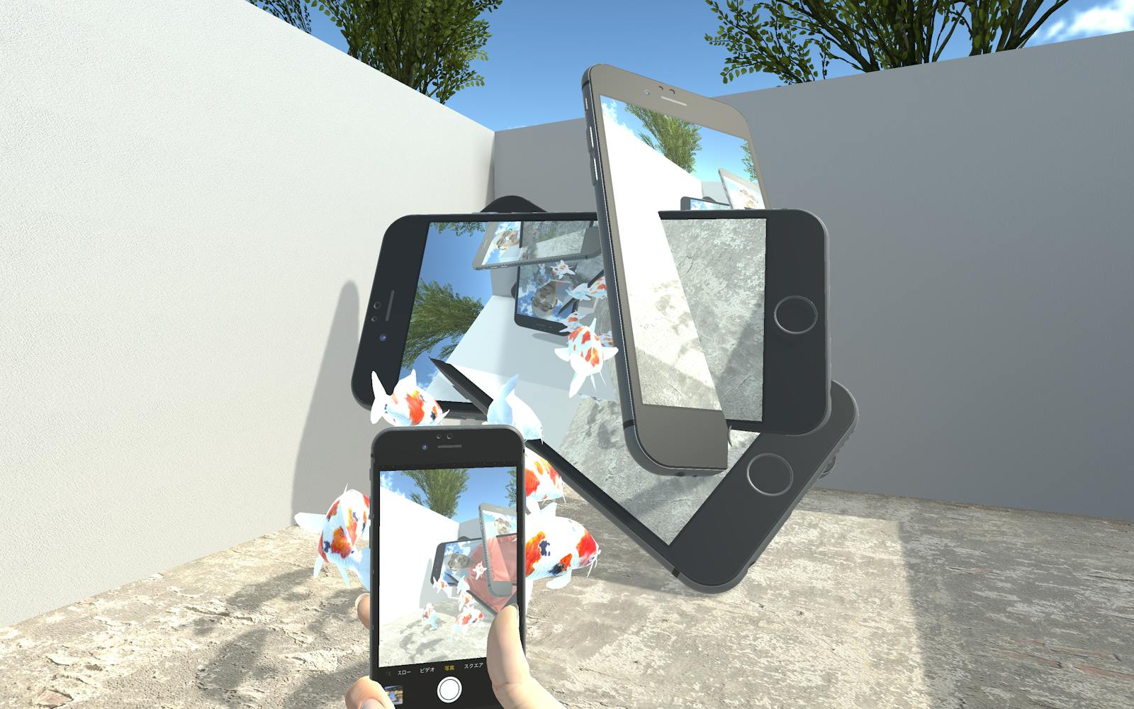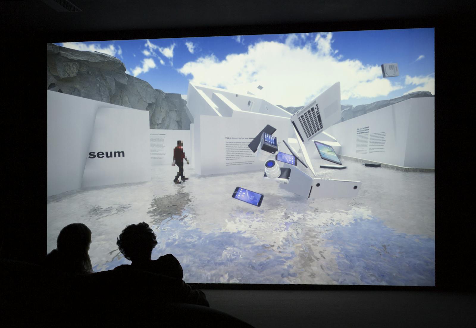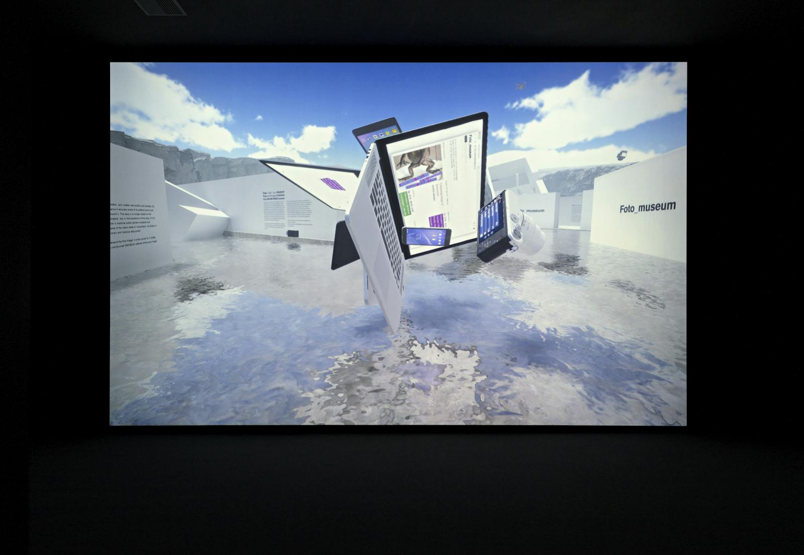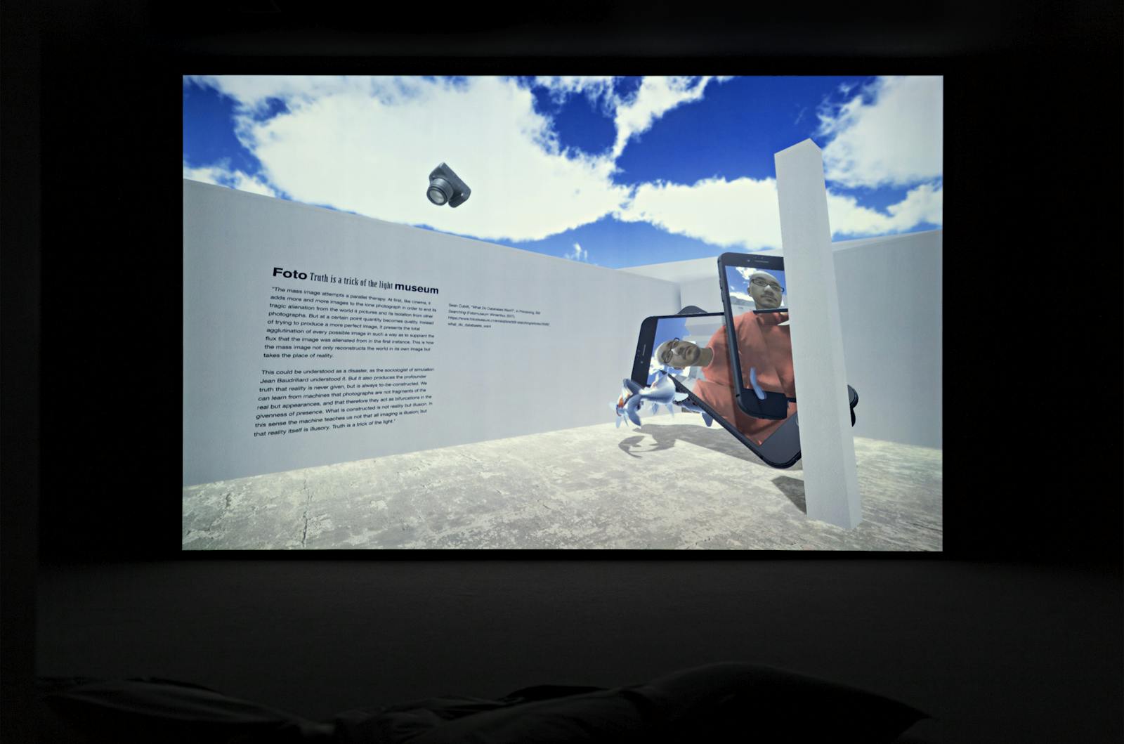 Fotomuseum Winterthur has commissioned Akihiko Taniguchi to create a study for a glossary of contemporary photography. The artist realised a playable 3D environment on the basis of an exact replica of the SITUATIONS exhibition space in Winterthur. An abstraction of its counterpart, this virtual environment is populated by surreal oversized smartphones, bouncing DSLRs, as well as by quotes from authors who have inspired Fotomuseum’s ongoing research on the changing role of the photographic. The digital SITUATIONS space allows the viewer to navigate through the different ideas and trajectories that have driven the developments of the museum’s vision and programme. Playfully subverting notions of photorealism and photographic simulations, Taniguchi’s study materialises the many questions that lie at the core of the changes of photographic media that are shaping our understanding of them today. The study also explores digital and playable spaces as a complementary and integral part to the physical exhibition experience, while attempting to rethink what a glossary could be and in what forms discourse can be included in an exhibition setting.