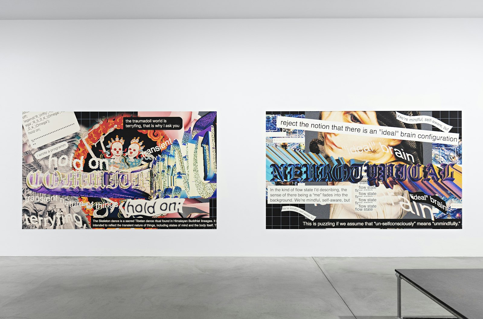 In her artistic practice, Berlin-based artist Sofia Crespo experiments with artificial intelligence, neural networks and computed image recognition. Trauma Doll brings to life an artificial intelligence that suffers from mental illness like depression or PTSD. To cope with its anxieties, this A.I. trauma doll gathers visual and textual elements from all over the internet – quotes, headlines, photographs, code, drawings – and assembles them to create highly dense collages that appear digital in their aesthetics yet also reminiscent of a more traditional poster design. According to the artist, Trauma Doll “sees patterns everywhere in the web and connects them”, generating forms of expression that tap into a larger societal discussion of how our mental and emotional landscapes are increasingly influenced by digital technologies. Delegating the profoundly human experience of mental illness to a generative A.I. authorship, Trauma Doll raises questions of agency as well as the affective and psychological aspects of our networked society.