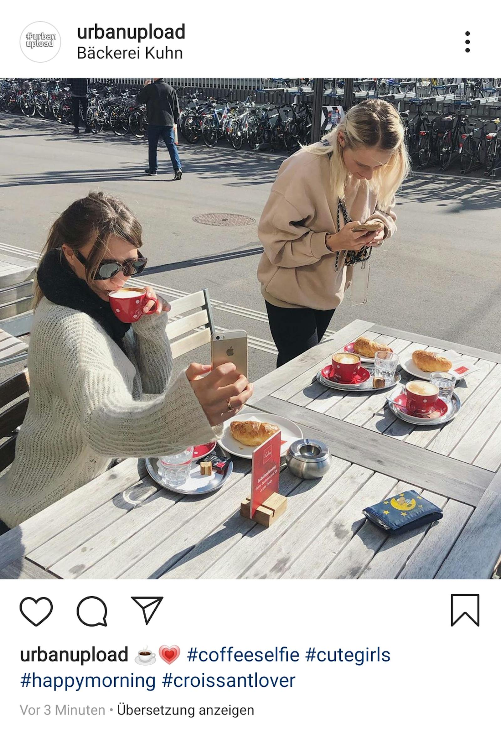 In the “Urban Upload” workshop, students of F+F Zurich were guided through Winterthur’s urban space – physically and virtually – by the instructors Laura Hadorn and Eva Schuler. Places that are often tagged or localised/marked on Instagram were analysed in terms of their presentation on Instagram (if available), how they are photographed by the visitors and how these stage themselves in or through this space. The participants of the workshop were invited to employ strategies such as imitation, parody or juxtaposition and re-contextualise their new images with hashtags. Current visual phenomena, mechanisms of social media and one’s own interaction with platforms such as Snapchat or Instagram were analysed and discussed as part of the workshop.